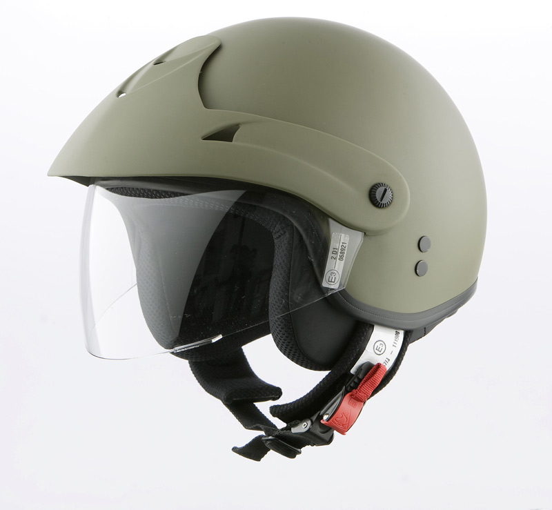 Visiera trasparente ad iniezione con trattamento antigraffio, spessore 2,2 mm. applicata insieme al frontino in ABS verniciato mediante delle viti in nylon.